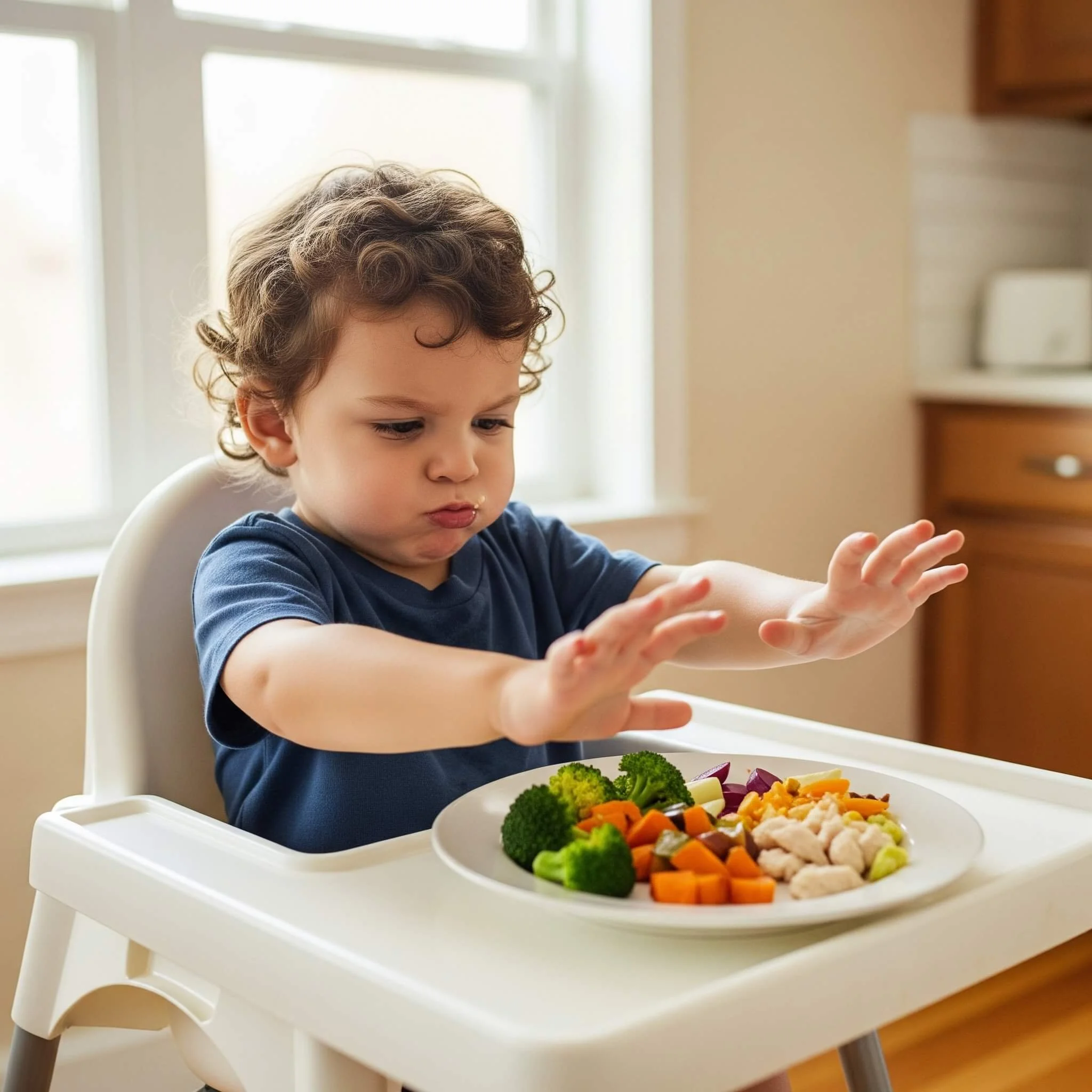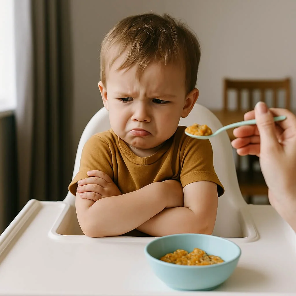 Around age two, many children experience neophobia — a fear of new foods. This may be rooted in evolutionary survival instincts and tends to peak in early toddlerhood. Sensory preferences, fatigue, and even personality traits can also influence how a child responds to food.